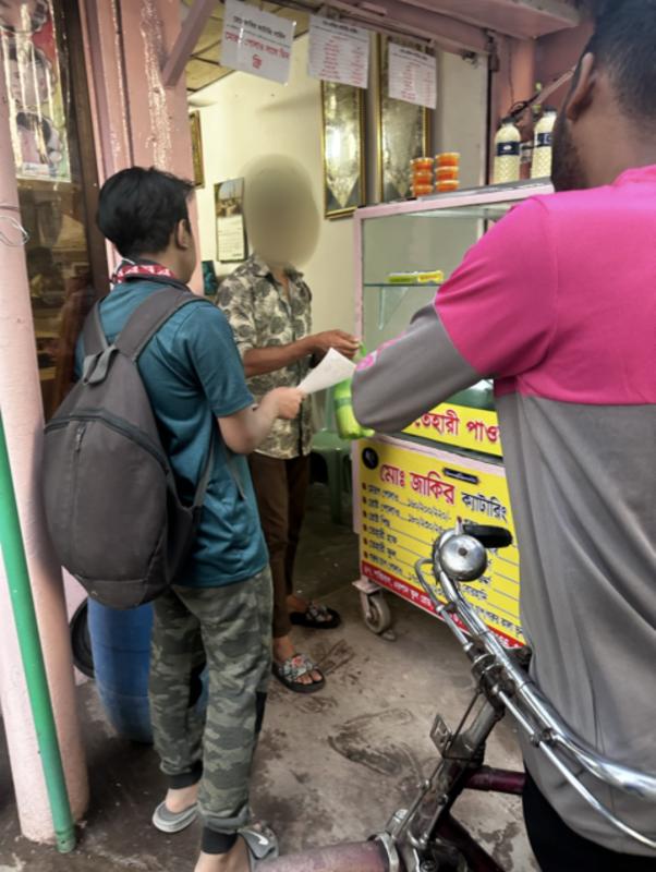 As the Former Senior Patrol Leader of BIAM Model School & College Scout Group, I led the campaign with support from Patrol Leaders Md. Mir Ashraful, Rafiqul Islam Uday, and rover Md. Raiyan Mollah from Samatat Open Scout Group. From 9th to 10th April 2025, we visited food carts in Moghbazar, Malibagh, and Shantibagh, distributing awareness leaflets to both vendors and customers.