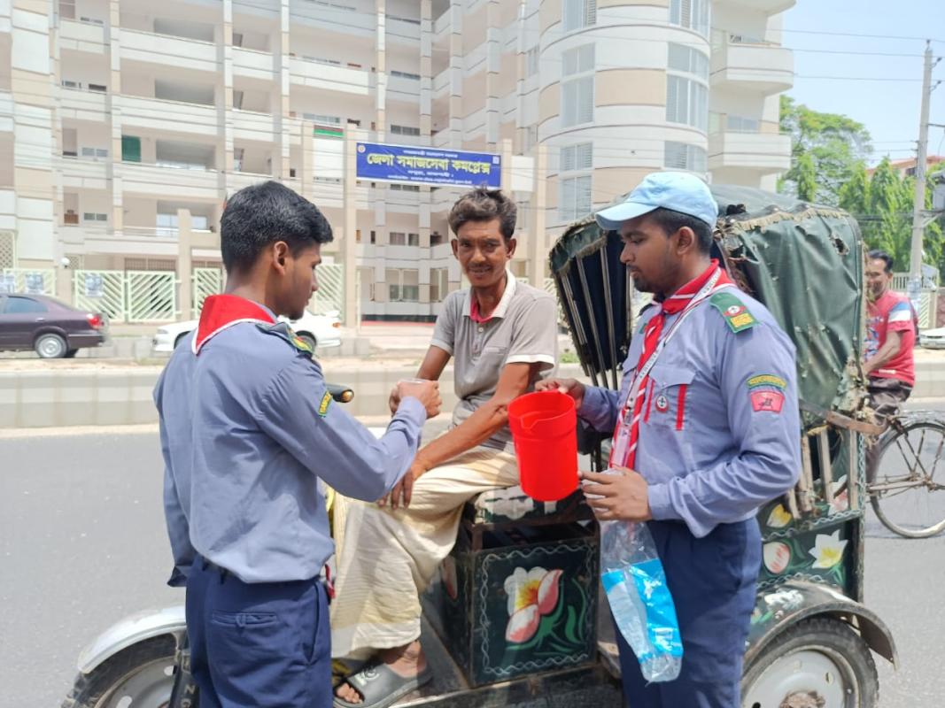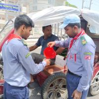 During the ongoing summer, the heat of the sun during daylight hours is very high. So the use of water has now become essential. But traveling from one place to another, drinking water is scarce with us and buying a bottle of water is not everyone's cup of tea. So to provide clean drinking water to all, Rajshahi Polytechnic Institute Rover Scout Group organized free water distribution drive on Rajshahi-Naogaon highway road.