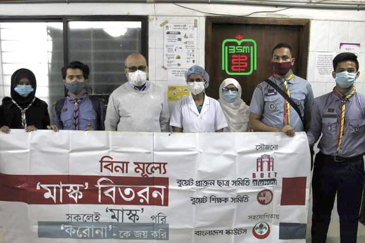 distribute masks at Bangabandhu Sheikh Mujib Medical University (BSMMU), Paediatric Hematology and Oncology Department ( Golden ribbon project) in the mask distribution program of BUET Alumni Association (BUETAA) and Gazi Group in collaboration with Bangladesh Scouts with the slogan - Let's all win 'Corona' by wearing 'Mask' !!