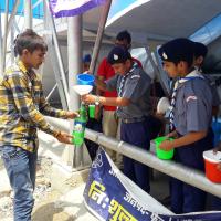 Since last 12 year Free water distribution to passengers travelling by the Indian Railways is conceptually inspired by the values of peace, friendship and strives towards harnessing greater humanitarian values. The distribution programme carried out by scouts and guides under the guidance of me as D.O.C. (Scouts) aimed at providing fresh and cold water to the passengers free of cost. In the scorching heat of summer when the temperature reaches a high of 48 degrees it is a very tiresome job to travel and when these thirsty and tired passengers are provided fresh and cold RO water they show gratitude and thankfulness towards the scouts and guides.