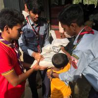 "গাইবান্ধায় বন্যা দূর্গতদের মাঝে রোভারদের ত্রাণ বিতরণ"