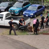 En el lugar, realizamos el diseño y rellenamos con tierra para postriormente sembrar las plantas.