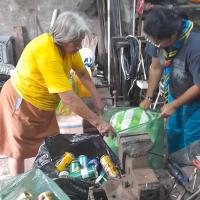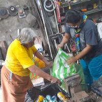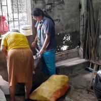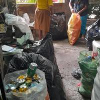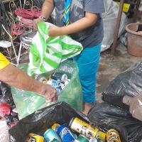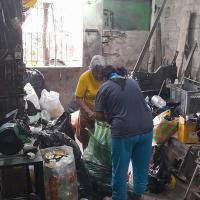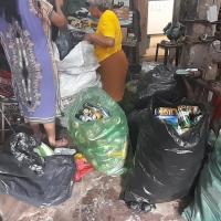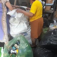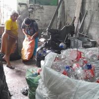 En casa realizamos el reciclaje y reúno los que son botellas de gaseosa y tapitas plásticas mas o menos hasta llenar todo una habitación (mi bodega) ya juntada por varios meses procedo a buscar un lugar donde compren este material y lo vendo al mismo tiempo hago lo mismo con papel plástico grueso, y aluminio