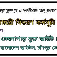ঘূর্ণিঝড় বুলবুল এর পর বাংলাদেশ স্কাউটস চাঁদপুর জেলা ও মেঘনাপাড় মুক্ত স্কাউট গ্রুপ এর যৌথ বাস্তবায়নে ত্রান সামগ্রী বিতরণ করা হয়।