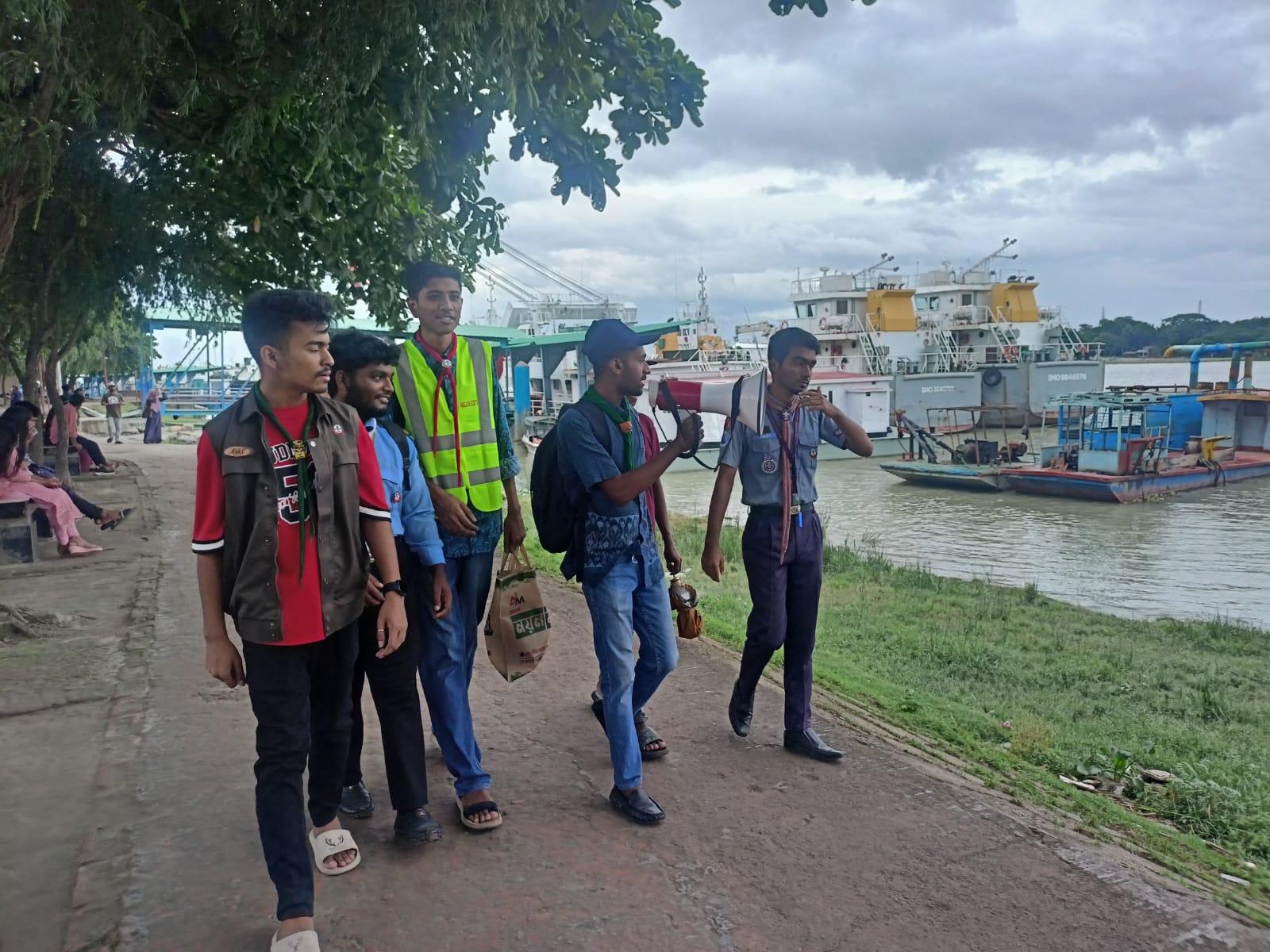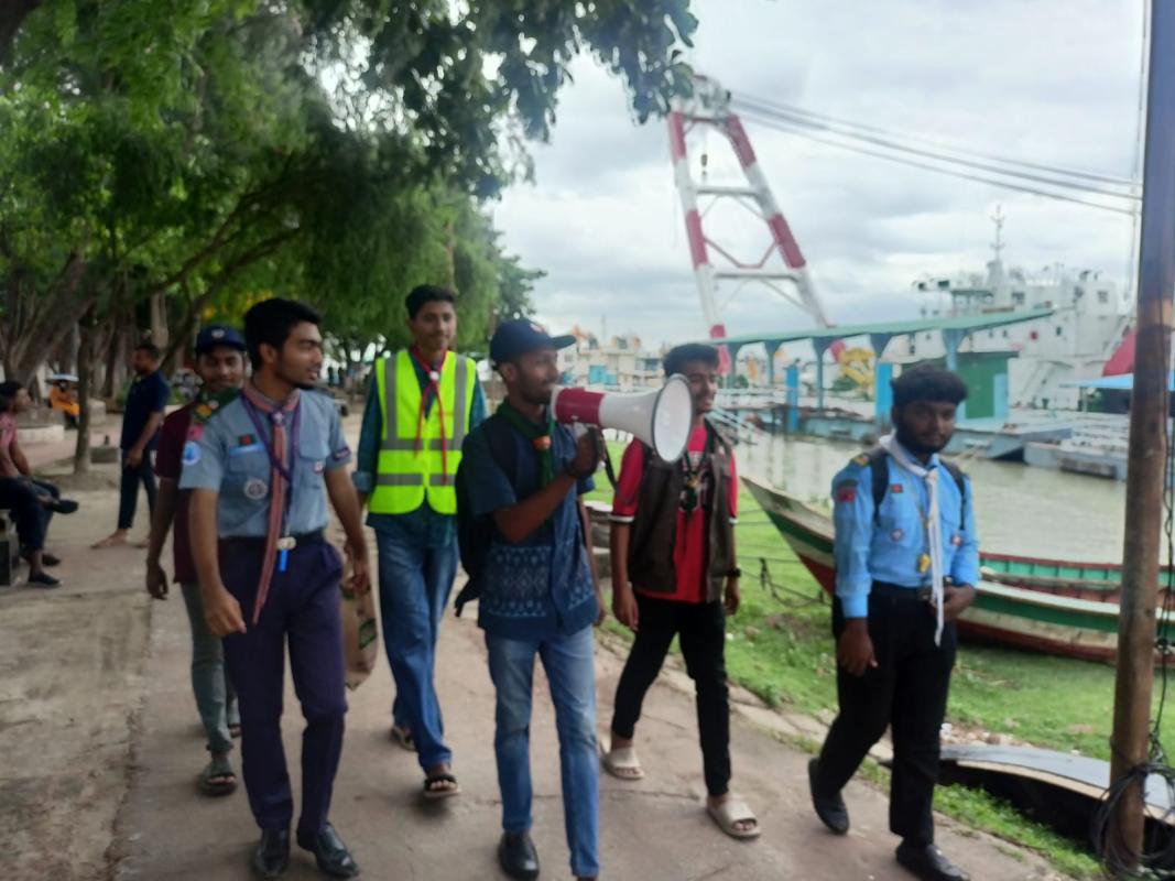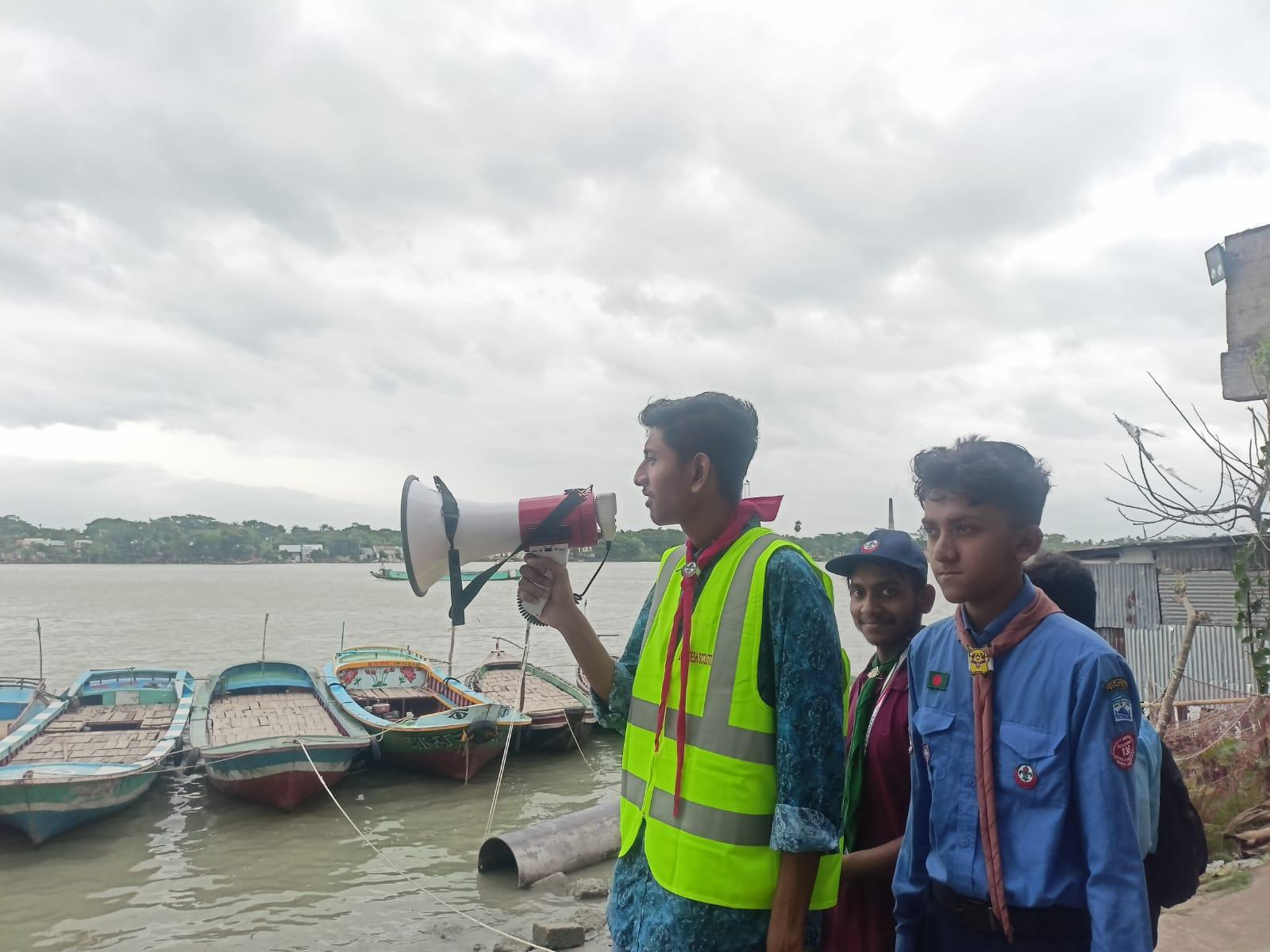 ২৬ শে মে বরিশালে ১০নম্বর সতর্ক সংকেত দেখানোর সাথে সাথে আমরা ১০জন স্কাউট ও রোভার সদস্য মিলে বরিশালের কির্তনখোলা নদীর পাড়ে ও ৩০ গোডাউন এলাকার মানুষদের সতর্ক করি এবং নিরাপদ আশ্রয় কেন্দে যাওয়ার জন্য অনুরোধ করি।