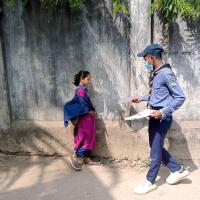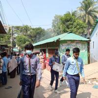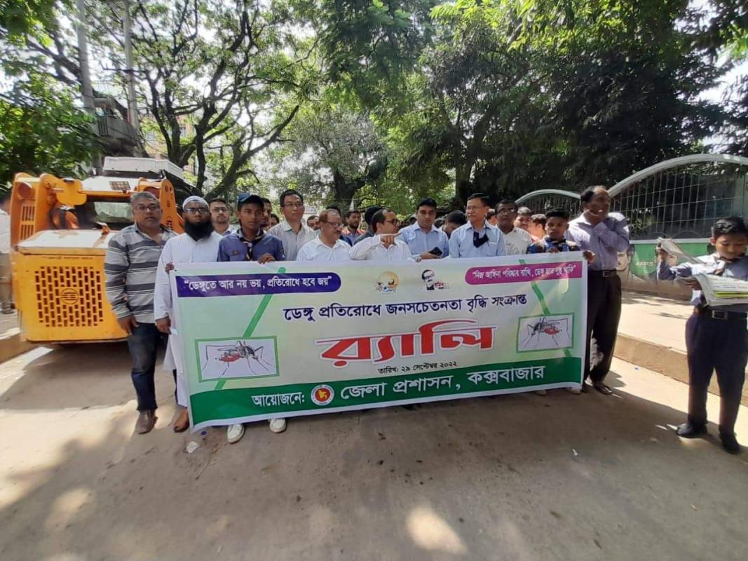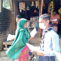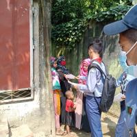 Giving poster for the awre of preventing dengue.