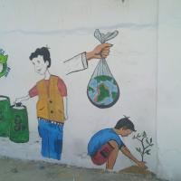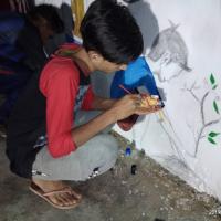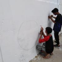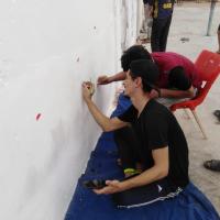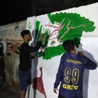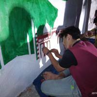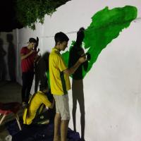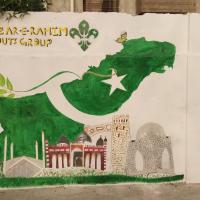 Gulzar-e-Rahim Scouts Group performs the wall art activity on the below them, Total 50 Scout/Rover/Leader took part in the activity to show their interest in scouting and also in the time of the activity "Plant Green and Save Blue"