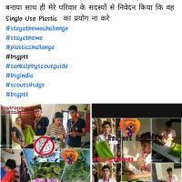 के तहत मैनें कपड़ा बैक बनाया एवं उसे अपनी सोशल मीडिया पर अपलोड किया और साथ ही यह संकल्प लिया कि सिंगल यूज़ प्लास्टिक का उपयोग ना करें एवं अपने परिवार के सदस्यों को भी यही कहा एवं पर्यावरण के प्रति एक कदम उठाया