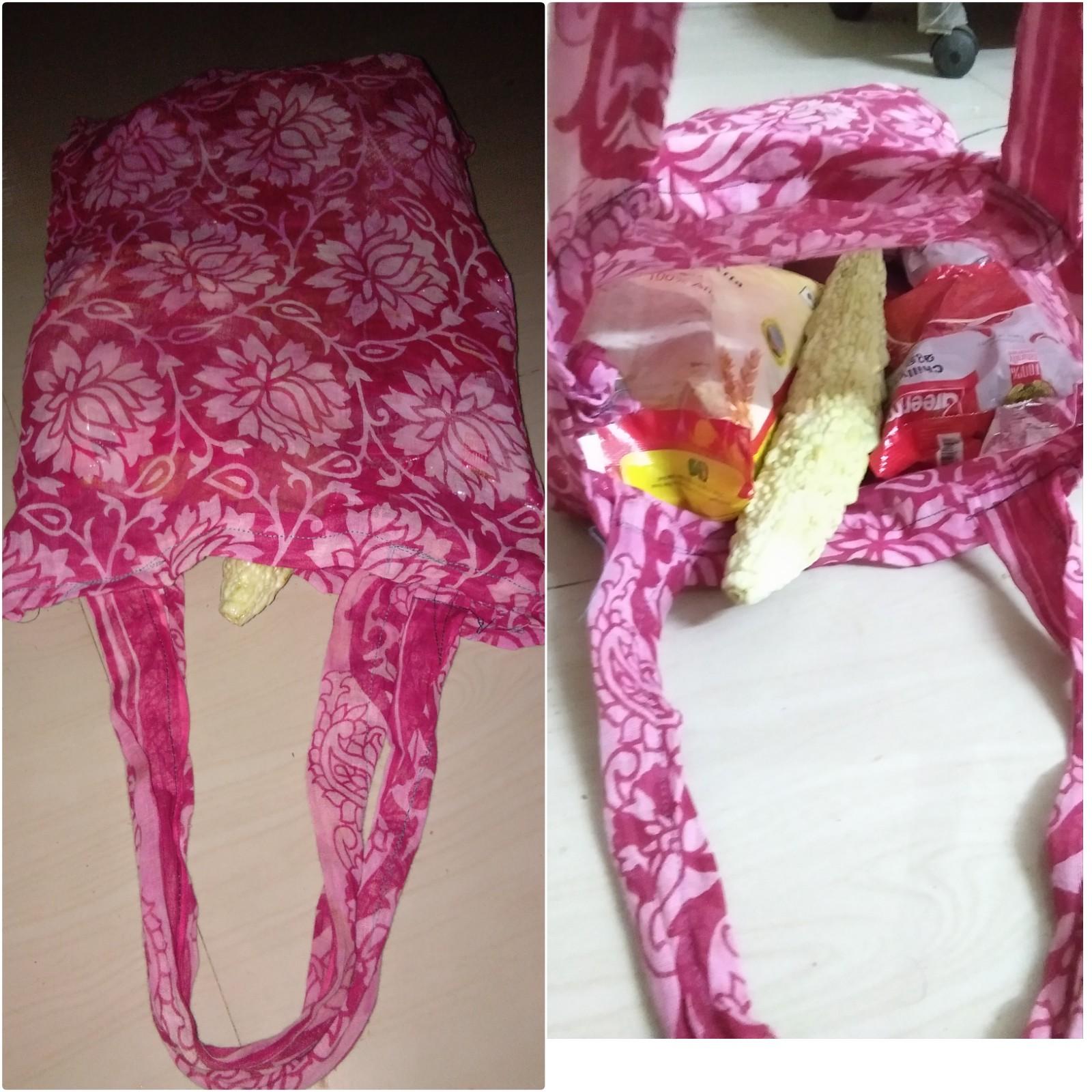 Sankalp to create a better tomorrow Part B challenge 4 - Go green I made a cloth bag from old textiles and use it as a shopping bag #bsgindia #stayathome #scouts4sdg #plasticchallenge #bsgptt #sankalpbyscoutguide