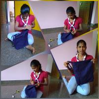 I make a cloth bag from the old textile from my home and use it as a shopping bag.