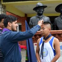 Earlier, Mr. Pandey a messenger of peace iniator offerred flowers on the statues of Lord Baden Powell and Lady Powell before his run to mark the historic 50 years of scouting in Lalitpur.
