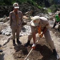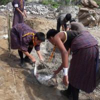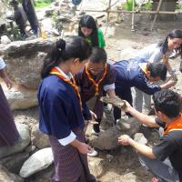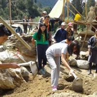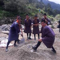 Nazhoen scouts volunteer in construction of Gongsa Dumra (in front of Trongsa Dzong) to mark the 1st birthday of Gyalsey