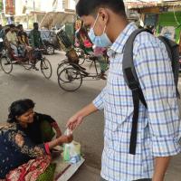 Description:- Bought 10 packets of chicken polao and 10 bottles of water (500 ml) from Shantinagar More. Which was given to 10 poor, helpless and destitute people at different places of the road from Shantinagar More to Rajarbagh Police Line to Khilgaon Railgate.