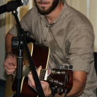 He performed after rock band and other singer with guitar.
