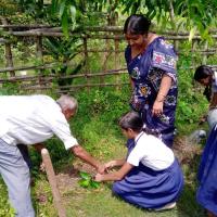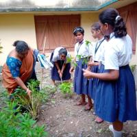 Green your school...The guides of Chandrabhag Srikrishna Girls High School Guide Group planted a large number of trees in their school premises with the above aim. They also took pledge to nurture these plants so that it can be a tree one day