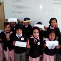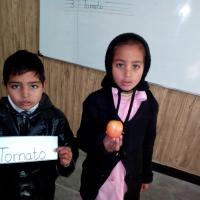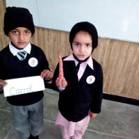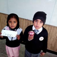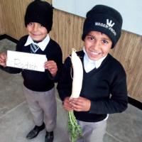 A group of student demonstrating their food that was sown in their home during HDF kitchen gardening compaign under grow their own food program