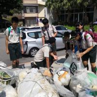 台北市立螢橋國中童軍團成員50人,與螢橋國中扶輪社扶少團以及金山清潔隊員共計140人於2019年10月6日到台灣金山員潭溪景觀橋,進行海岸垃圾撿拾,垃圾分類等。過程中,夥伴4-8人一組,共同撿拾沙灘上的垃圾,其中夥伴們發現大多的垃圾以寶特瓶與玻璃罐,保麗龍為多數,服務員與當地清潔隊員們一同帶領夥伴們完成垃圾分類,長靴了解到海洋的破壞經過等等。過程中,讓夥伴做中學,做中玩,玩中學,在充滿歡笑過程中,幾十小時就過去了,夥伴才發現,沙灘上的垃圾只有減少一點,海浪不斷地拍打上沙灘,卻來不及大家的撿拾,讓夥伴心中感到難過,也深刻的體會到,隨手撿垃圾,順手做回收環保的必要。