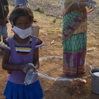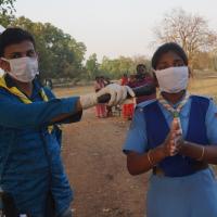 Hand wash demonstration and soaps, hand wash, sanitizers distributed by the Rovers & Rangers of Bargaon ITI Unit of Odisha State Bharat Scouts & Guides at Amilchuan village of Bargaon Block, Dist. Sundargarh (Odisha)
