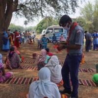 Rovers & Rangers of Bargaon ITI Unit of Odisha State Bharat Scouts & Guides distributed soaps, sanitizers and demonstrate how to wash hands properly to the people of Dahijira village of Kutra Block, Dist. Sundargarh, Odisha