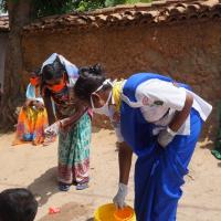 Hand wash demonstration and soaps, sanitizers distribution at Mandanabahal village of Subdega Block
