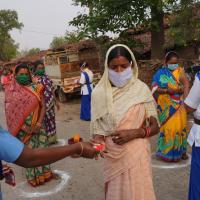 Hand wash demonstration and soaps, sanitizers distribution at Panderpali village of Bargaon Block, Dist. Sundargarh by the Rovers & Rangers of Bargaon ITI Unit of Odisha State Bharat Scouts & Guides.