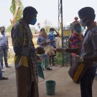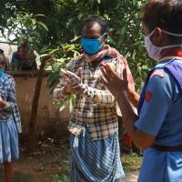 Rovers and Rangers of Bargaon ITI unit of Odisha State Bharat Scouts and Guides demonstrate how to wash hands properly to the people of Salepali village of Sadar, Sundargarh Block of Odisha State.