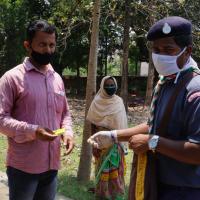 Rovers & Rangers of Bargaon ITI unit of Odisha State Bharat Scouts & Guides demonstrate how to wash hands properly and distributed soaps, sanitizers to the people of Sargipali village of Lephripara Block, Dist.- Sundargarh, Odisha