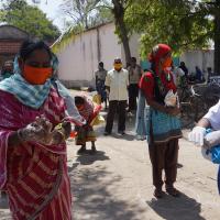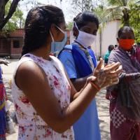 Rovers and Rangers of Bargaon ITI unit of Odisha State Bharat Scouts and Guides demonstrate how to wash hands properly and distributed soaps, sanitizer at Ujalpur village of Tangarpali Block, Dist. Sundargarh, Odisha