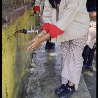 The students are seen washing their hands near the water taps and hand washing stations. People in the community are now more aware about the importance of hand washing when their own children reached out the message.