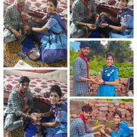 भाई बहन के इस त्यौहार पर भाई ने अपनी बहनों को उपहार में 1-1 पौधा दिया और दोनो ने मिल कर अपने आँगन में इस अनोखी याद को जीवंत किया दोनो ने मिल कर पौधा लगाया ।