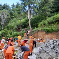 Many volunteers and de sungs helped in the hard labour in the renovation of Genekha lhakhang..