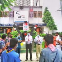 Because of the Covid-19 pandemic situation the educational institutions were closed for a long time. After that 12th September 2021 school was reopened. So we decided to check the students and distribute mask for their safety.
