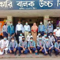 This project started form the planing. Our unit leader Mr. A.K.M Zahangir Hossain Mojumder sir guided us to do that. Then we started as the guideline . We checked everybody's temperature and had noted that. Then we sanitized everyone and checked that they weared the mask if anyone