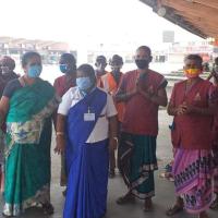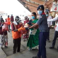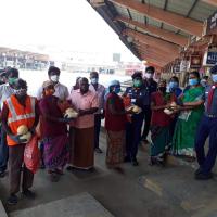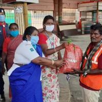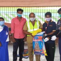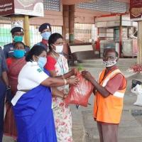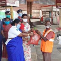 A gift bag of rice, vegetable, fruits and other necessary items worth of INR.500. each presented to all corporation public health workers.