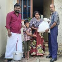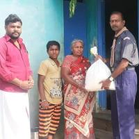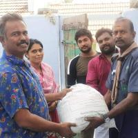 A bag of rice,vegetable,fruits and other house hold things, worth of INR.1500. each is presented to the people of local area.