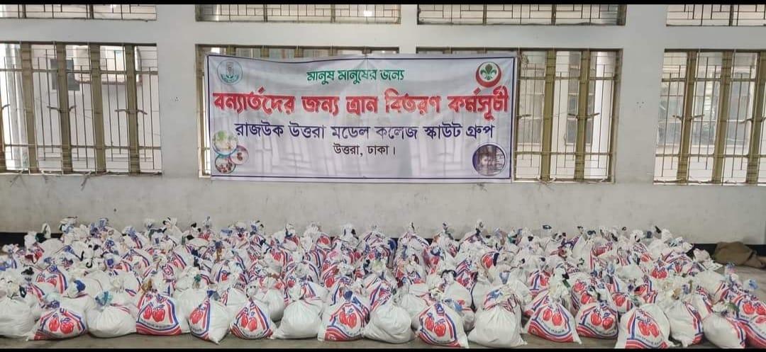 There was a terrible flood occuring in the south-eastern part of our country, Bangladesh. Many districts including Feni,Noakhali, Cumilla and many other places were affected dangerously by flood. Our scout team, Rajuk Uttara Model College Scout Group, take an initiative to help the flood-affected people.Thus,we made a plan regarding how we will do the task. Following the plans and steps, we worked accordingly. I was inspired more by doing the works with others.