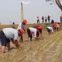 Helping the poor and needy, planting paddy