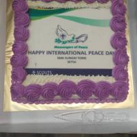 Kami sangat bertuah kali ini kerana pihak Jelajah Keamanan MoP berserta para peserta dihidangkan dengan sebiji 'Kek Keamanan' yang telah disumbangkan bagi menyokong perjuangan Messengers of Peace di negeri Terengganu.