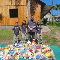 A tropa Facão do Grupo Escoteiro Pindorama , juntou a comunidade para arrecadar ursinhos de pelucia para doar para o SAMU Litoral.