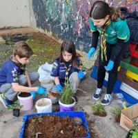 Nosso maior objetivo era buscar uma forma de transformar alguns materiais, que poderiam ser descartados de forma incorreta na natureza, e dar-lhes novos usos além de proporcionar conhecimentos para os membros da Tropa Escoteira e da Alcatéia sobre o uso de plantas medicinais.