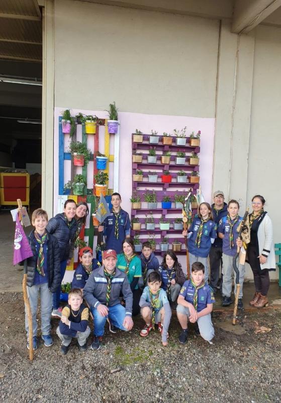 O projeto foi executado na sede do nosso Grupo Escoteiro, onde dividimos as ações entre a Tropa Escoteira e a Alcatéia, sendo que a Tropa Escoteira ficou com a responsabilidade de recolher os materiais necessários para a confecção e implantação da Horta Vertical de Chás, a Floreira de pallets e a composteira de baldes. Já a Alcatéia responsabilizou-se pelos materiais para a produção dos cachepôs de garrafas pet.