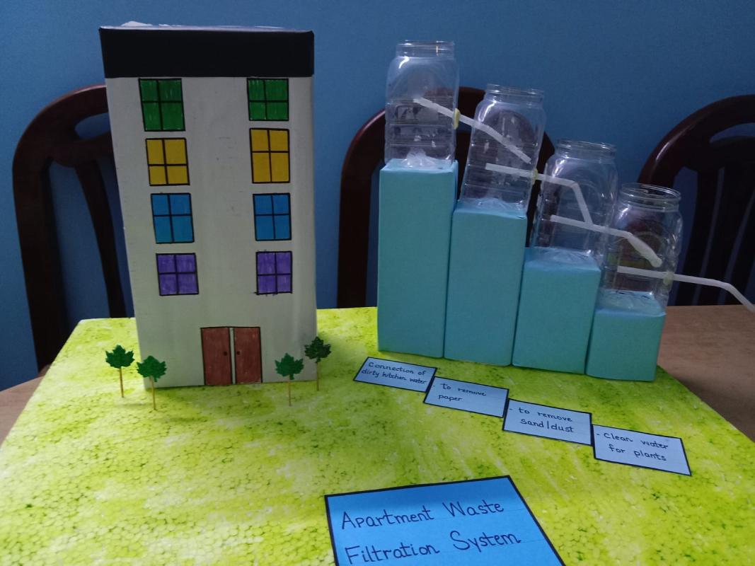 As we all know water is very important in a human's life, and wasting it is threatening to society. So I and my friends decided to spread awareness about the ways we can save water. So we came up with the idea of creating a model of a process in which the wastage of household(water) can be reused. If we replicate this model on a bigger level this can help a lot of people.