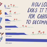Plastic products are very common in our modern life. According to estimates, every year we use approximately 1.6 million barrels of oil just for producing plastic water bottles. Plastic waste is one of many types of wastes that take too long to decompose. Normally, plastic items can take up to 1,000 years to decompose in landfills. Even plastic bags we use in our everyday life take anywhere from 10 to 1,000 years to decompose and plastic bottles can take 450 years or more.