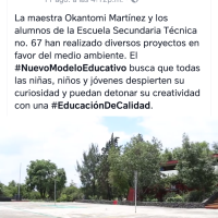 Independientemente de que yo ya no estoy en la secundaria, se nos pide pasemos al proyecto a otro estudiante, por lo cual tengo que asesorarlo desde mi experiencia y pasarle toda la información, en mi caso, el Humedal, ya que la televisora de TV Azteca siempre apoya dando difusión Nacional a este tipo de proyectos por este medio de comunicación.
