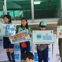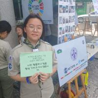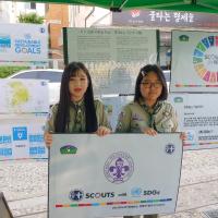 공해가 없는 지속 가능한 발전을 위하여 자연을 생각하고 배려하는 친환경 에너지를 주변에 전달하기 위하여 성당 입구에 친환경 에너지 체험존( 태양광 반사판을 이용한 조리기, 자전거 발전기를 이용하여 전기에너지를 생산하여 선풍기 작동 및 믹서기를 작동시켜 팥빙수 만들어 먹기, 환경오염 줄이기 표어 들고 사진찍어 SNS에 알리고 전시하기)을 설치하여 정발산성당 교우 및 주민들게 친환경 에너지의 우수성을 홍보하였고 UN SDG’s Goal 6 깨끗한 물과 위생에 대하여도 알아보았습니다.