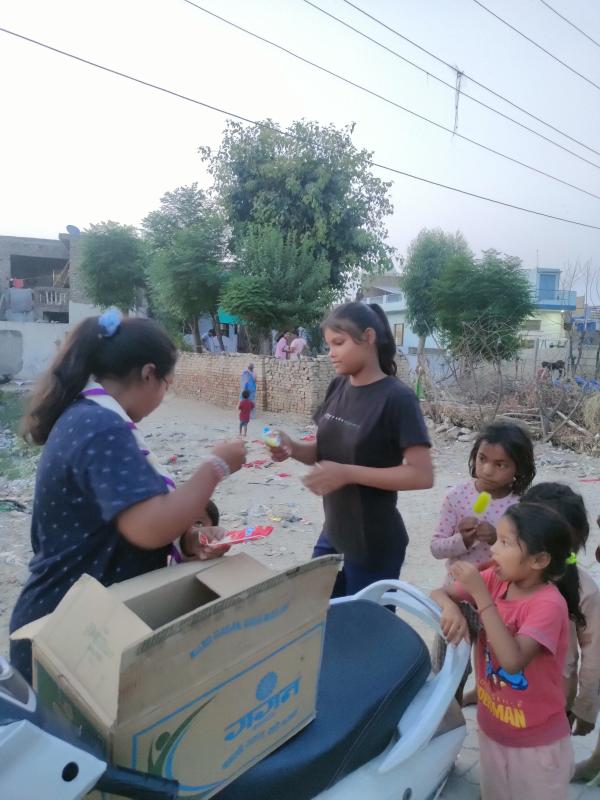 The execution of the project began with the procurement of the popsicles. After purchasing the ice creams, they were transported for distribution. I, along with a known person, used a scooter to reach different areas, ensuring we could easily navigate and distribute the treats to various communities. I successfully distributed the icecreams to many underprivileged children and individuals across different locations, bringing them smiles and a moment of cool relief.
