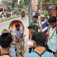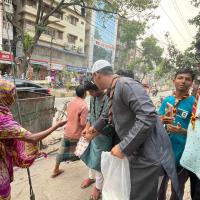 At first, we raised fund among us for the project. 12 people including me volunteered the project. We bought meals and water . Then we decided a place from where we distribute the meals. After that we started distribution from our decided place and distributed the meals among the poor people, before ifter time.