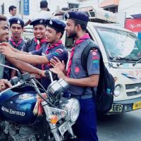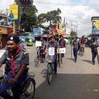 ham sab log cycle hike karke. alag alag jagao me jaker ke logo ko helmet pahne ki salah de rahe tha . jo v log helmet nahi pahan ker a rahe tha unhe ek pen gift kar rahe tha ise unhe ek guilt or smile ke sath ye baat yaad dila rahe hai ki helmet ki importance samje.