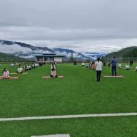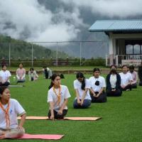 A total of approximately 65 students and teachers attended a yoga session at Royal Thimphu College coordinated by Yoga Instructor from Indian Embassy in Bhutan, Mr. Murti.