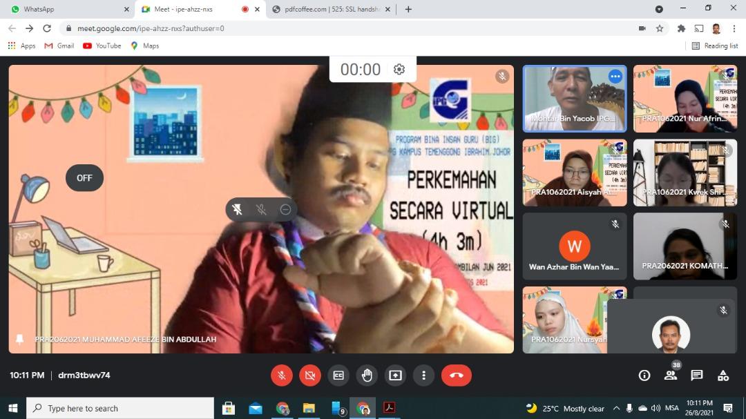Program Bina Insan Guru secara talian dilaksanakan kepada semua pelajar PDPM Ambilan Jun 2021 pada 26 hingga 29 Ogos 2021. Program disertai seramai 34 orang pelajar dengan pengisian lestari alam sekitar seperti aktiviti air, aktiviti kembara, pemakanan sihat dan aktiviti tali tinggi. Pelaksanaan aktiviti secara dalam talian kerana Pandemik Covid-19 diharapkan mendidik pelajar ke arah jati diri, cintai alam sekitar dan pengurusan program secara dalam talian.